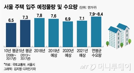 이에 서울의 주택 공급 부족 문제는 지속될 것으로 전망된다. 실제 서울시에 따르면 연평균 주택 수요량은 7만9000~8만4000가구인데 지난해 8월 국토부가 추정한 서울의 2019~2022년 입주예정 주택은 6만9000~7만6000가구에 그친다. 또 지난해 입주물량은 민간택지 내 분양가 상한제 적용 등으로 공급이 미뤄지며 예상치 7만6000가구에 못 미칠 것으로 추정된다. 연간 1만여가구 내외의 공급이 부족할 것으로 추산된다.