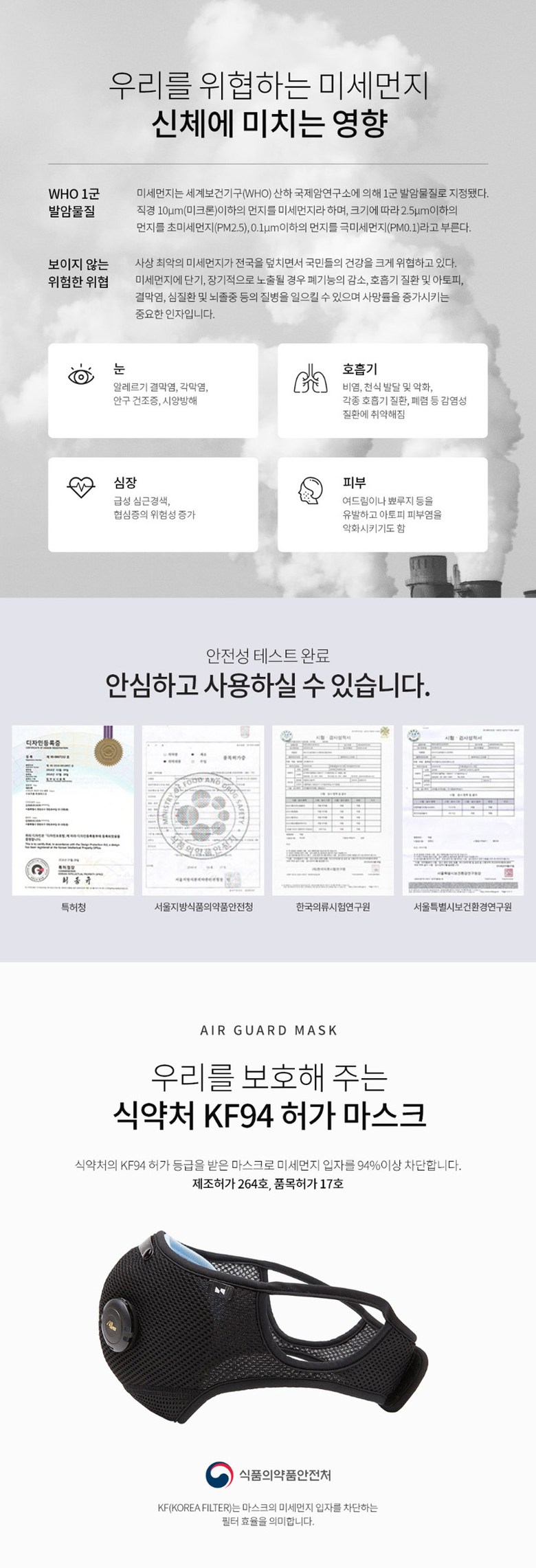 에이퓨리 에어가드 미세먼지 차단 마스크(KF94) 우한 신종코로나바이러스 대비 마스크(블랙)