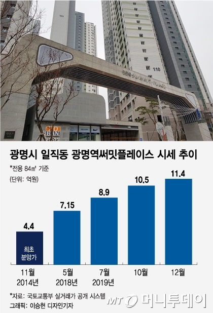 인근에 있는 광명역써밋플레이스도 마찬가지다. 84.96㎡가 지난해 12월13일 11억4000만원에 거래된 이후 최근 호가가 12억원까지 올랐다.
