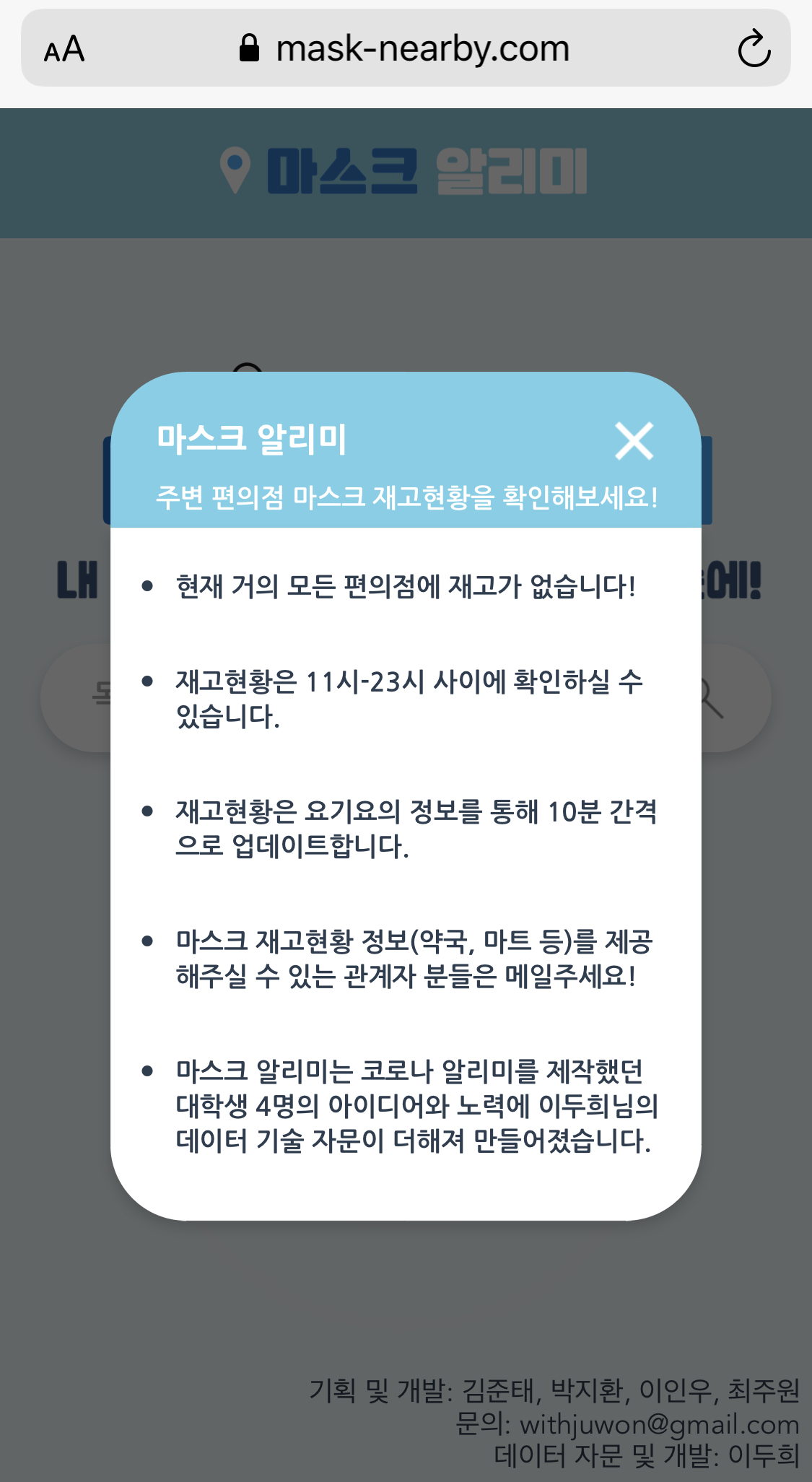 "마스크 알리미" 사이트는