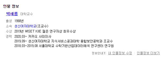 기사를 보면 카카오의 신임 사외이사로, 성신여대 융합보안공학과