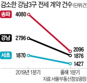 강남 3구 전세거래 40% 줄었다