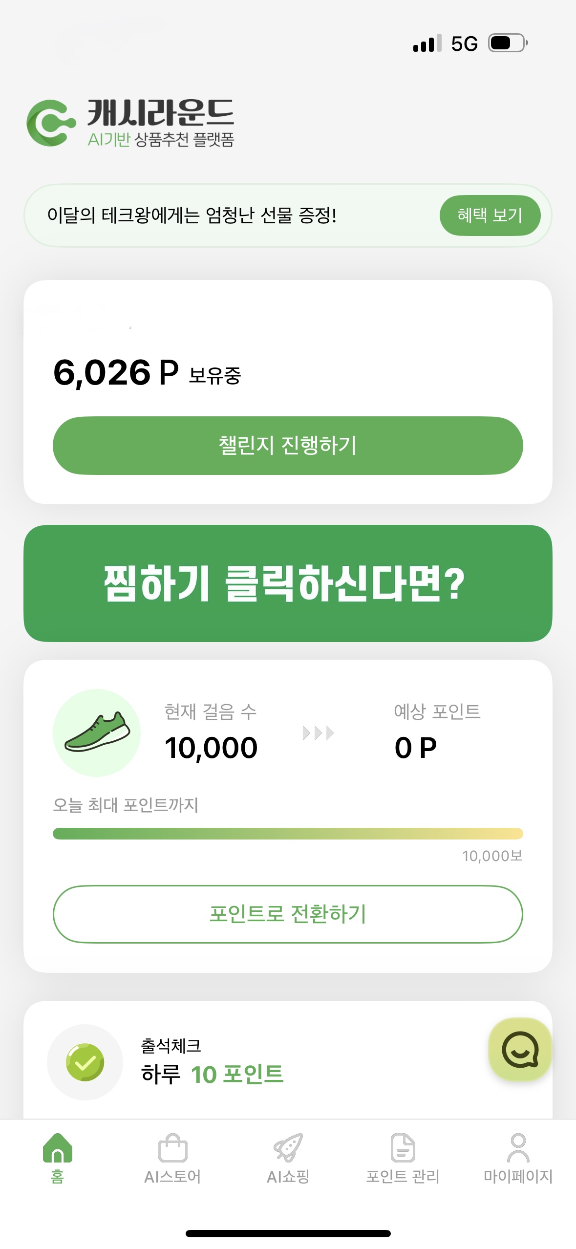 캐시라운드 앱 후기 & 추천인 코드 (AI 기반 포인트 적립앱, 만보기까지!)
