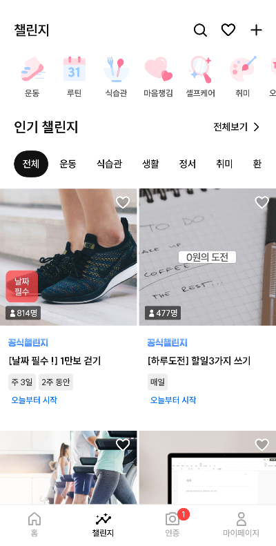 - 다양한 선택지: 자신에게 맞는 챌린지를 찾을 수 있음
