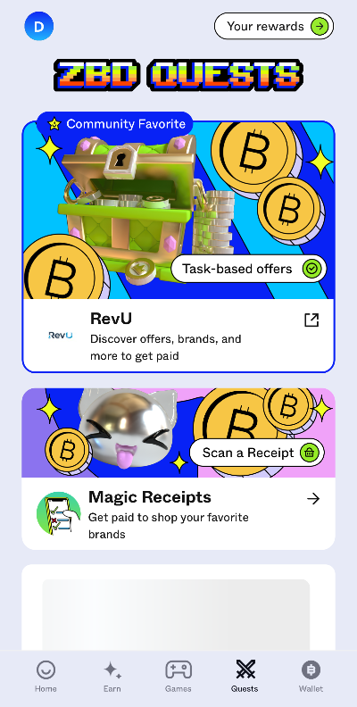ZBD 지갑의 진짜 매력은 바로 앱 내에 탑재된 다양한 수익 창출 기능입니다.