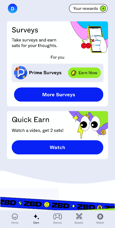 ZBD 지갑의 진짜 매력은 바로 앱 내에 탑재된 다양한 수익 창출 기능입니다.