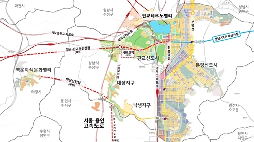 최근 서울과 가까운 수도권 지역 중 가장 개발이 활성화 되는 지역은 용인~서울간 고속도로(이하 용서고속도로) 주변을 손꼽을 수 있다. 용서 고속도로를 축으로 서쪽은 판교 대장지구가 개발을 시작했고, 동쪽으로는 낙생지구가 들어설 예정이며, 대장지구와 맞닿은 남쪽 지역은 용인시 고기동과 그 연장선인 신봉지구까지 많은 주택들이 들어서고 있다.