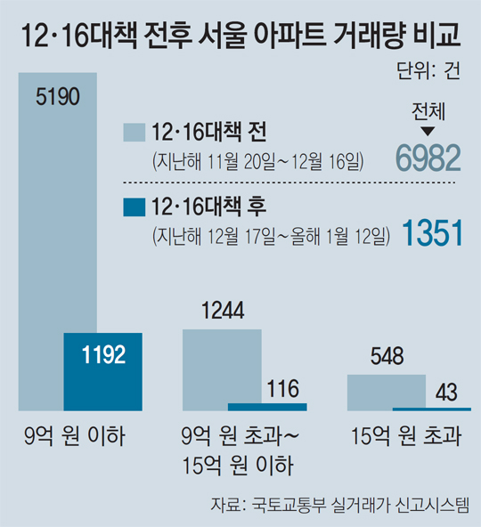 12·16 대책 한달… 서울 아파트거래 5분의 1 토막
