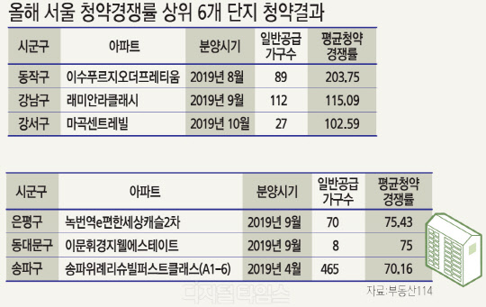 서울, 세자릿수 경쟁률 단지 3곳