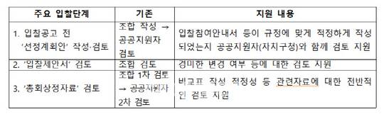 아울러 조합과 자치구에서 건설사의 입찰제안서를 보다 내실 있게 검토 후 선정할 수 있도록 입찰단계별로 변호사와 건축사 같은 전문가 파견을 새롭게 지원한다. 전문가 지원은 조합 또는 공공지원자인 자치구에서 필요한 경우 서울시에 요청하면, 시가 전문가 인력풀을 활용해 파견하는 방식으로 이뤄진다.