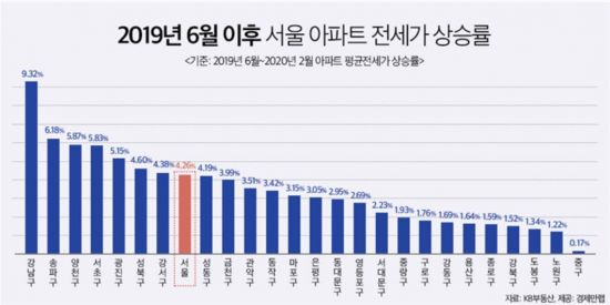 강남구 아파트 전셋값 지난해 하반기부터 9.32% 올라…서울 평균 2배