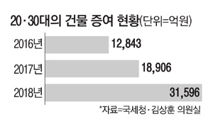 20대와 30대가 증여받은 주택과 빌딩 규모가 2018년 한 해에만 3조원이 넘었던 것으로 나타났다.