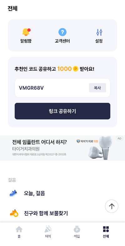 ✅ 방법 1: 걷기만 해도 포인트가 차곡차곡! (만보기 기능)