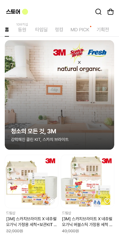 '스토어' 탭에서는 챌린지를 통해 얻은 리워드(포인트)를 사용해 실제 상품을 구매할 수 있습니다. 3M 같은 유명 브랜드 제품들이 입점해 있어, 단순한 기프티콘 교환을 넘어 실질적인 '리워드 쇼핑'을 경험하게 해줍니다.